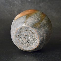 その瓢げた形に、赤く変化した滑らかな伊部土の上に、うねる様にカセが掛かって窯の中の炎や灰の流動的な流れを感じて面白い。