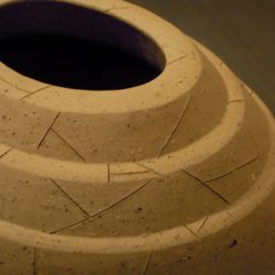 紐作りでの成型後、美しいその陶肌にフリーハンドで一気に入れた氷裂文。