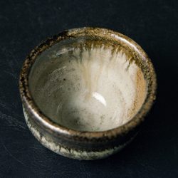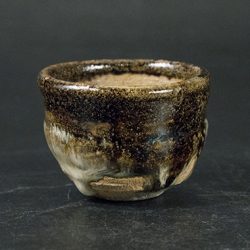 しかしながら小さい盃の中でも括れを持たせ、大胆な鉄釉の流れを活かした表情豊かな作品となっている。