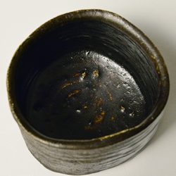 スッキリと立ち上がるお茶碗のボディーには“黒”とは言っても褐色や深い緑色に見える味わい深い色が乗る。それは季節の木々を引き立てる名脇役の苔のように、ひっそりと寄り添い、神秘的な魅力を与えている。