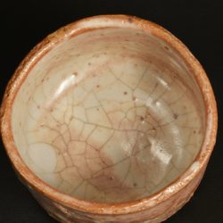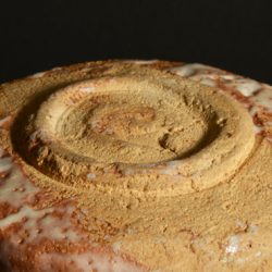 He pursued to create his ideal Shino for his entire life, while he made other works such as Kiseto, Shigaraki, Oribe and Karatsu. The clay of this item contains plenty of iron, and the beautiful red color is like evening sky. Its skin is called Yuzu-Hada, Citron skin-like, which is one of view points. There is his inscription “一ム” near the foot.