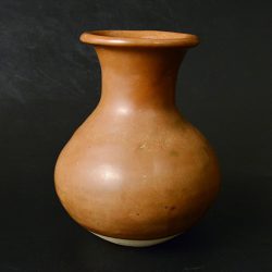 唐・宗の焼き物の研究として、道を大成した小山冨士夫先生のこの柿天目瓶は、フォルムはシンプルながらも、轆轤を弾いたばかりのような勢いや迷いのなさが見てとれて、口に至るまでお人柄である素朴なおおらかさが滲み出ています。とろりとしたマットな釉調は光を吸収しながらも反射する美しさがあり、経験を重ねた人物のような安心感を醸しだしています。