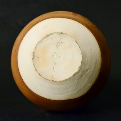 柿天目は、もともと北宋の焼き物で、特色としては、器全体に均一に発色した落ち着いたマットな柿色であります。組成はそれほど複雑なものではなく、精製された酸化鉄である紅柄を調合した釉薬ですが、焼成の温度が得にくいため中々本歌の柿釉を写しきれず、京都の陶芸家の憧れでありました。