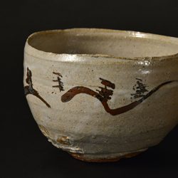 やや傾げたように見える佇まいの正面には鉄釉の筆が軽やかに跳ねる。