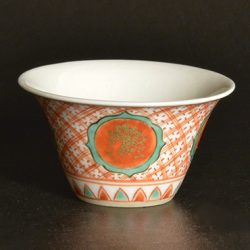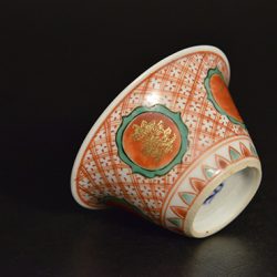 こちらは、新潟の石油王・中野春山からの受注で、魯山人が旧蔵していた中国明時代の嘉靖年間に作られた金襴手の盃をもとにした作品。
