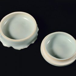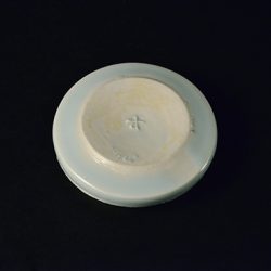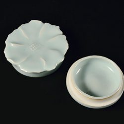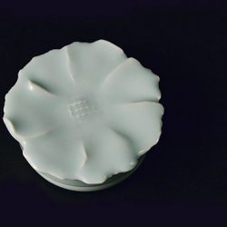 薄い花弁の動きの上には青白磁の瑞々しい釉が流れ、汚れない生命を吹き込んでいるよう。