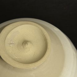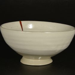白磁とはまた違う白に迷いのない筆使いで「花」と書かれた茶碗は、東洋陶磁の