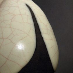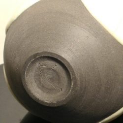 黒褐色の胎土に掛かるしっとりと黄味を帯びた灰白釉