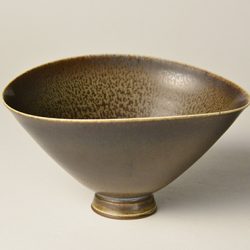 こちらの鉢はフォルムが軽やかでありながら、渋めの落ち着いた色味によりどこか哀愁を感じる。フリーベリといえば優美な曲線。見た目は繊細でありながらも、手に取ると安定感が感じられる。同じ釉でも二重掛けされているものがほとんどで、複雑な表情は同じものが二つと無いとされている。