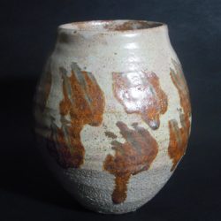 銕絵壷 栩翁 Jar with iron glaze pattern in ash glaze