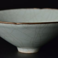 口縁はささやかな輪花となっており、周囲を繊細な覆輪で飾ることにより、その美しい空を切りとったような印象となる。