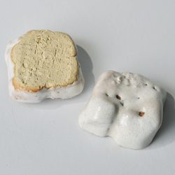 He makes his original Hagi glaze by rice straws that he cultivates. It is said to be very important not to pound the powder fine in order to get beautiful white.
