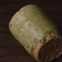 長石が含まれた荒々しい素地に、美しい伊賀釉が掛かる。