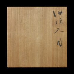 Thick iron glaze is highly contrasted with the white clay at the bottom. His characteristic use of clay is presented in the forms that the limb is gradually opened at the mouth. You can see the various expression of Yuteki (Temmoku glaze) by the lights and shadows that are made by the wheeling marks. It evokes viewers the mysterious water surface lit up by the moon.