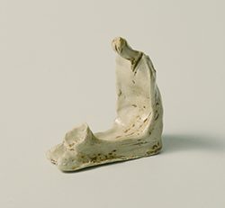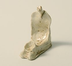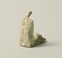 器を見つめている顔や背中の角度から、器にたいする愛情が感じられるような陶の人俑です。艶ぽい釉調に指跡による土の凹凸が陰影をつくっています。静かな時が流れているような空気感がその姿から感じられます。