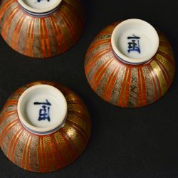 色繪赤地金銀彩煎茶碗 五客 Sencha bowl 5