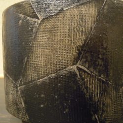 多くの色を一色ずつ丹念に重ね、焼成を何度も繰り返すことにより生み出される色彩とモダンな紋様が目を惹きつける。