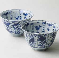 芙蓉手深向附 五客 A set of 5 small bowls, Ko-sometsuke (Underglaze blue)