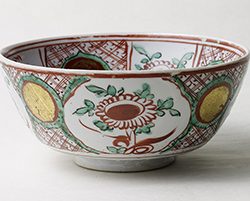 荒川豊藏 赤絵玉取獅子鉢 ARAKAWA Toyozo Bowl, Overglaze enamels, Decorated with lion-dog design