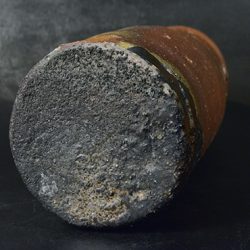 何よりも底部の強い焦げと窯変の対比が鮮やかで、ぐるりと回る一筋の篦目が力強さを加えている。