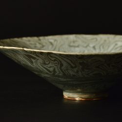 揺らめくような口淵の歪み、流れるような練上げによる柄いき、その上に無造作に入る貫入、どれをとっても神秘的で深みが感じられる。